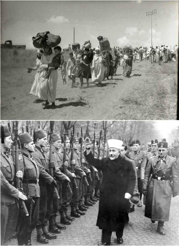 On May 15 – the day the war began – Haj Amin al-Husseini, aka the Grand Mufti of Jerusalem, appealed to Arabs in Palestine to leave, because “the Arab armies were about to enter and fight in their stead.” His appeal, the London Economist reported, “was the most potent factor [in their flight]. It was clearly intimated that Arabs who remained in Haifa and accepted Jewish protection would be regarded as renegades.” Al-Husseini was an exterminationist anti-Semite, having spent much of the Second World War in Berlin as a guest of the Nazis, meeting personally with Adolf Hitler and later helping recruit Bosnian Muslims into a Waffen SS Division, then fleeing back to the Middle East after the war ended.
