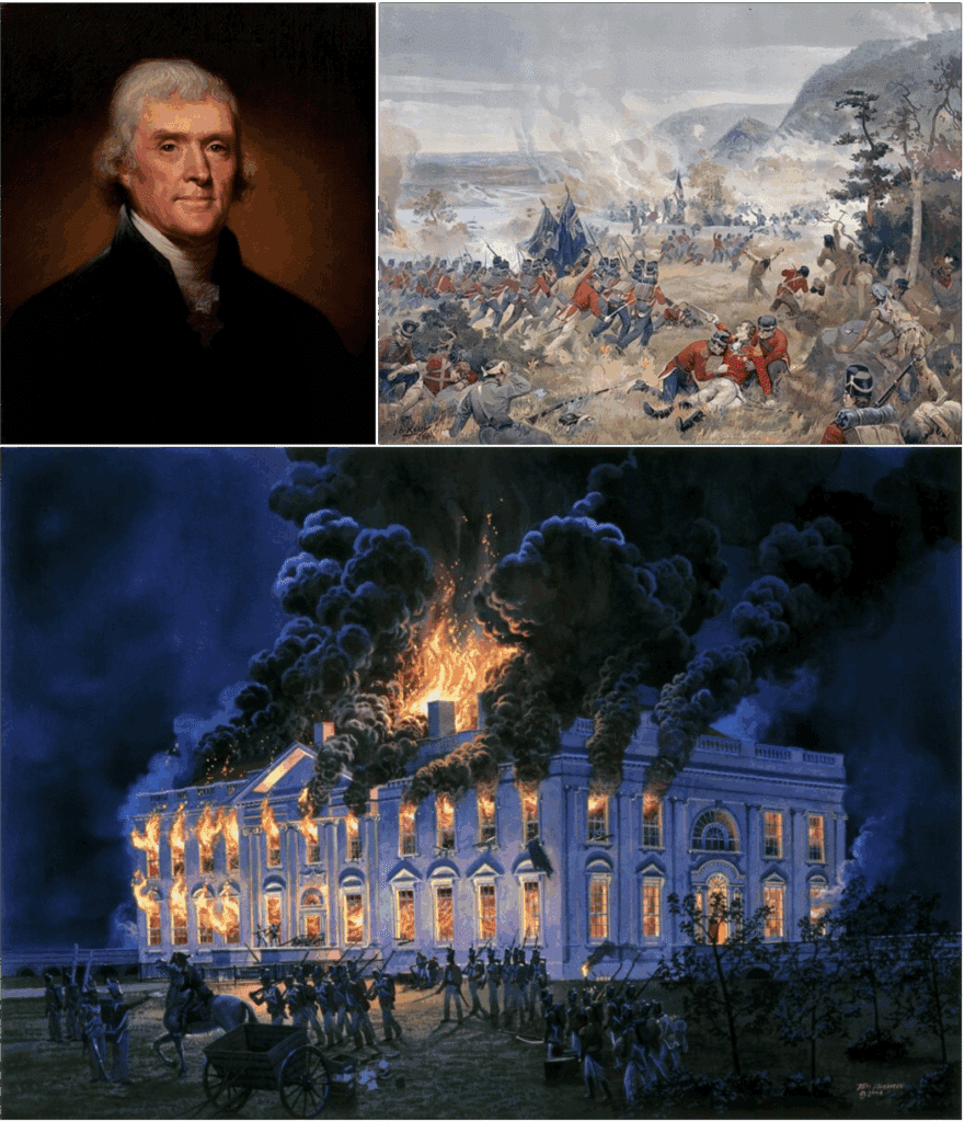 “The acquisition of Canada this year, as far as the neighborhood of Quebec, will be a mere matter of marching,” wrote former U.S. President Thomas Jefferson to his friend, the radical journalist William Duane, in August 1812. Keen to exploit a British Empire heavily engaged in fighting Napoleon Bonaparte, President James Madison had engineered the first ever declaration of war made by the U.S. in the hopes of achieving, in Jefferson’s words, “the final expulsion of England from the American continent”. This did not go as planned. Only a few weeks after Jefferson’s letter, Madison had to flee Washington, D.C., as the British army advanced upon the brand-new capital, burning down the newly-built White House.