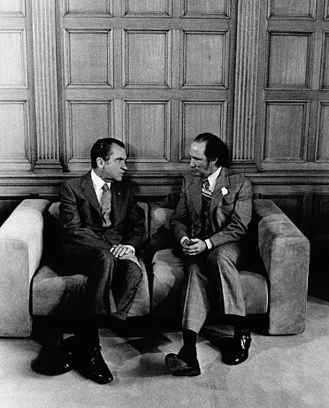 xTo no avail: In 1971 U.S. President Richard Nixon (left) introduced his New Economic Policy, which imposed 10 percent tariffs on all imports, including from Canada. Prime Minister Pierre Trudeau (right) tried unsuccessfully to gain an exemption. (Source of photo: White House Photo Office Collection)