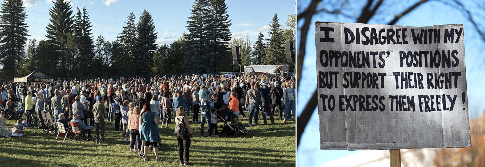 xNo ideas – other than those threatening imminent physical harm – should ever be censored. If this “golden rule” were upheld, Canada would be a better place. Though cancelled in at least half-a-dozen cities, Feucht’s concerts went ahead in Saskatoon and Edmonton – with happy crowds of concert-goers as well as small and peaceful protests. (Sources of photos: (left) Jeremy Warren/CBC; (right) afagen, licensed under CC BY-NC-SA 2.0)