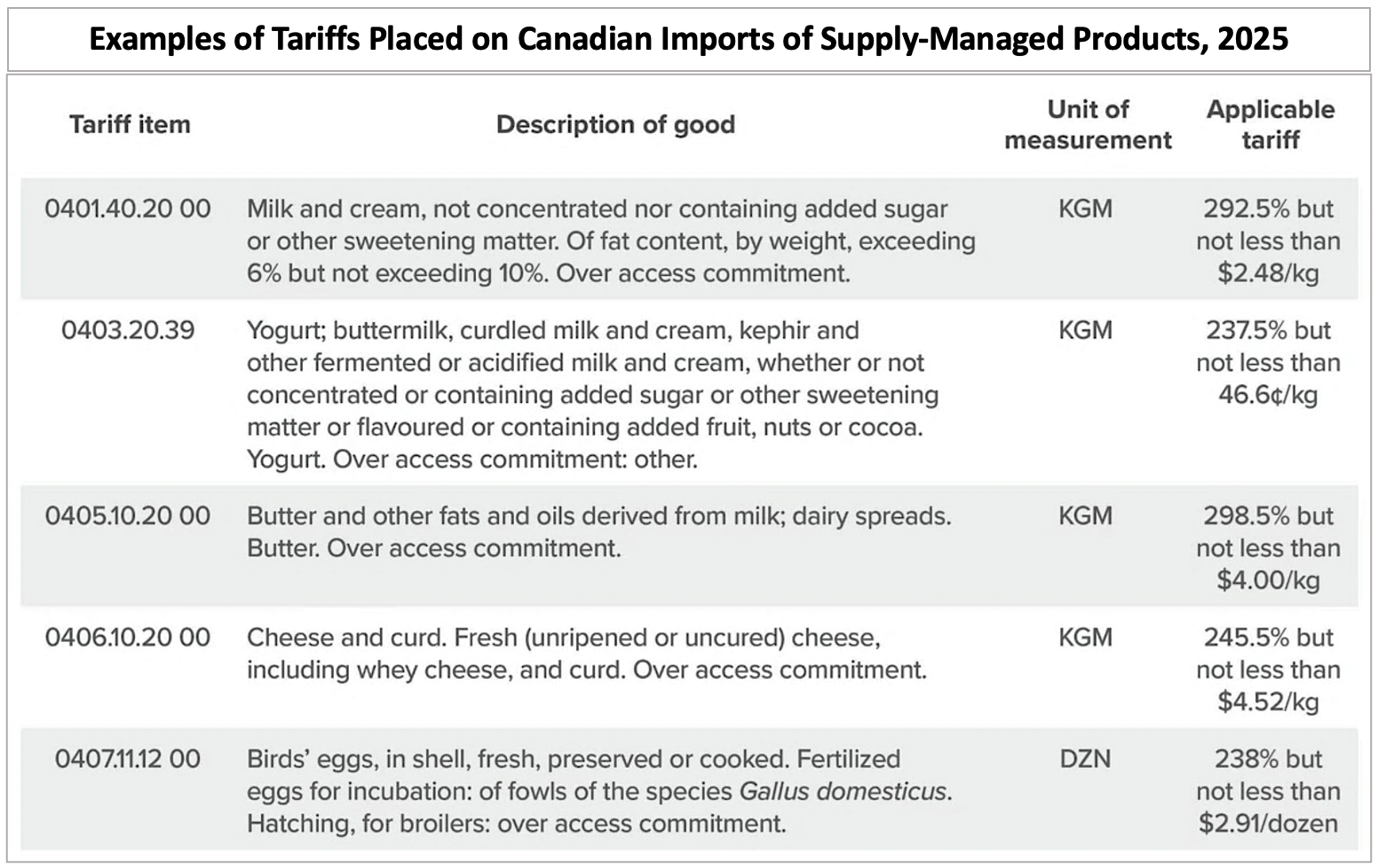- “Foreign imports of dairy are limited to ensure Canadians have access to homegrown food.”