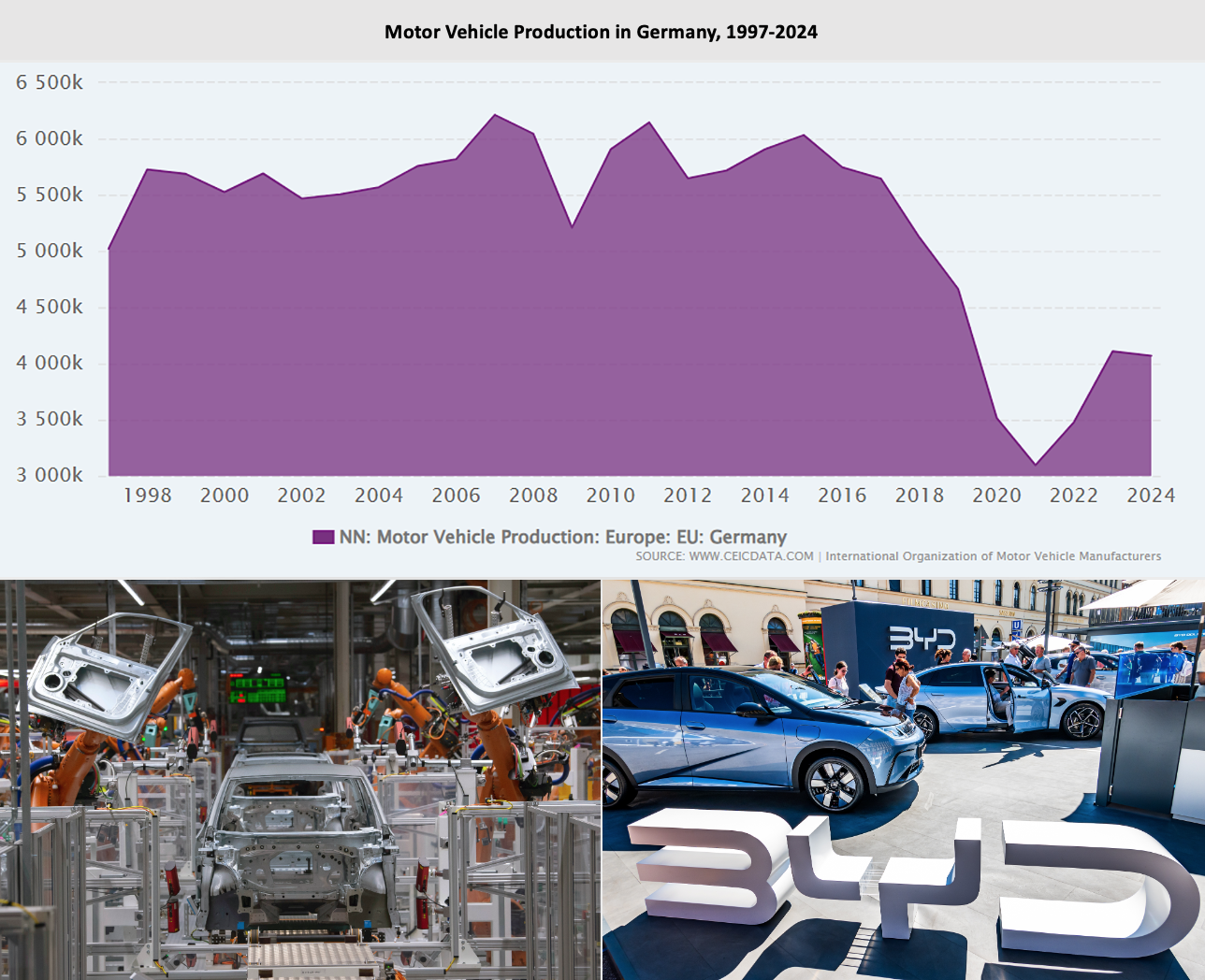 And now the country’s single largest industrial category, biggest employer and foremost source of export earnings too is under threat. Germany’s automotive sector has been described as “an ecosystem that provides livelihoods for millions of people.” But now, Chinese automakers such as BYD and NIO have entered European markets with innovative, affordable products, eroding profitability and market share for Volkswagen, Audi, BMW and Mercedes-Benz and leading to the first mass layoffs in that industry since the Second World War over 80 years ago. Automobile production in Germany declined by an incredible 29 percent between 2017 and 2024, according to auto industry data, while China’s output continued to increase and the U.S. was down by a more manageable 10 percent. No wonder Germany’s economic growth has flatlined and its average per capita income is falling. Sound familiar?