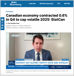 The Canadian economy is currently struggling with a youth unemployment rate of over 14 percent; the unemployment rate for the broader Gen Z demographic (those born between 1997 and 2012) is estimated at 9.2-9.8 percent. The economic environment of high unemployment and stagnant if not declining wages has contributed to a pessimistic outlook. According to one report, 21 percent of young North Americans believe World War Three breaking out is more likely than them buying a house in the next five years. Gen Z’s malaise is compounded by Canada’s economy shrinking at an annualized rate of 0.6 percent during the fourth quarter of 2025 (following a smaller decline in Q2 and marginal growth in Q3).